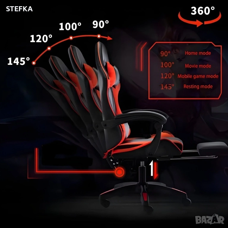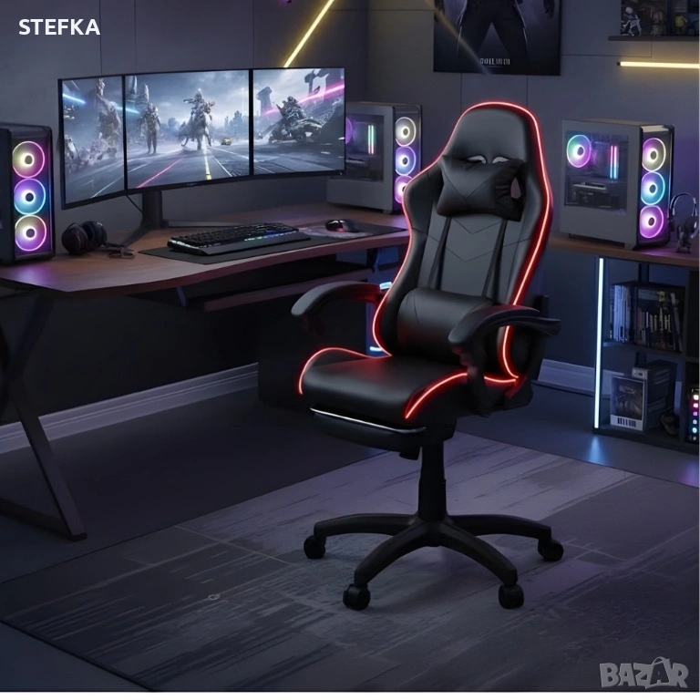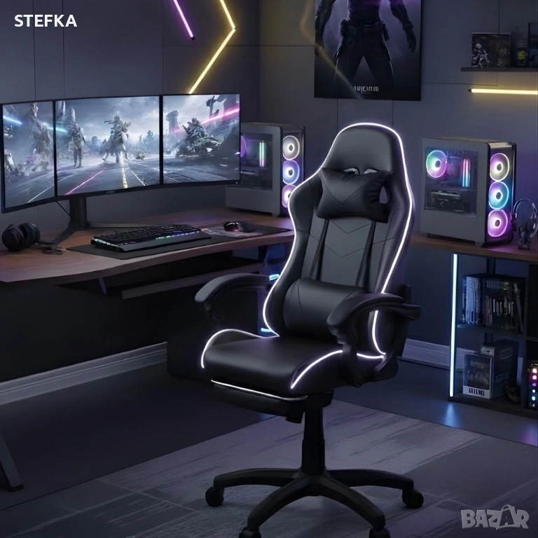 Геймърски стол премиум LED: Ергономичен комфорт със 7 цвята светлинни ефекти и релакс зона