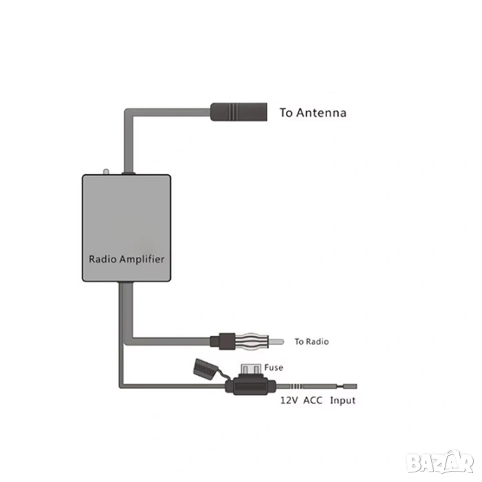 Усилвател за автомобилна антена с захранване 12V. Усилва и подобрява сигнала на вашата аудио система в автомобила.