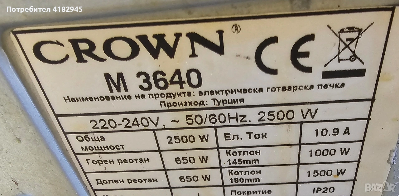 готварска печка crown → Обява 53886907