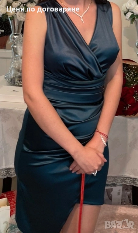 Къса сатенена рокля без забележки веднъж е носена