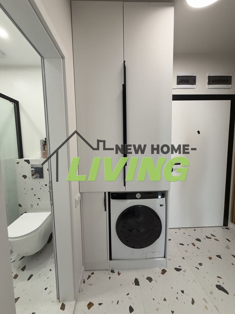 Жилището е с площ 63 кв.м и впечатлява с много светлина, простор и функционално разпределение. Апартаментът е изцяло ново обзаведен с поръчкови мебели и висок клас електроуреди и готов за нанасяне, без необходимост от допълнителни вложения.