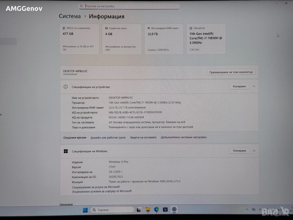 - Intel Core i7-11850H (8-ядрен, 16-нишков, 2.30 - 4.80GHz, 24MB Кеш)