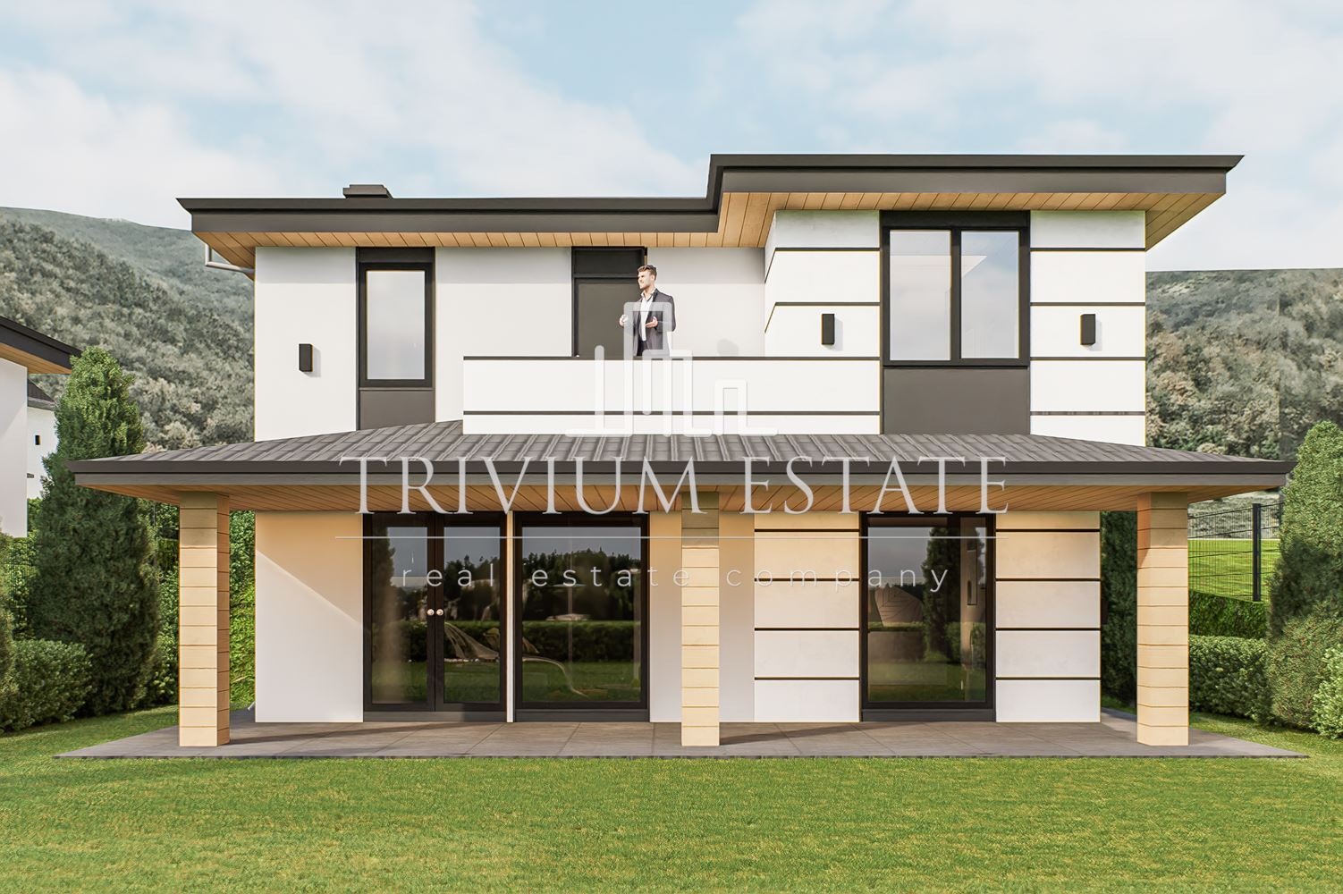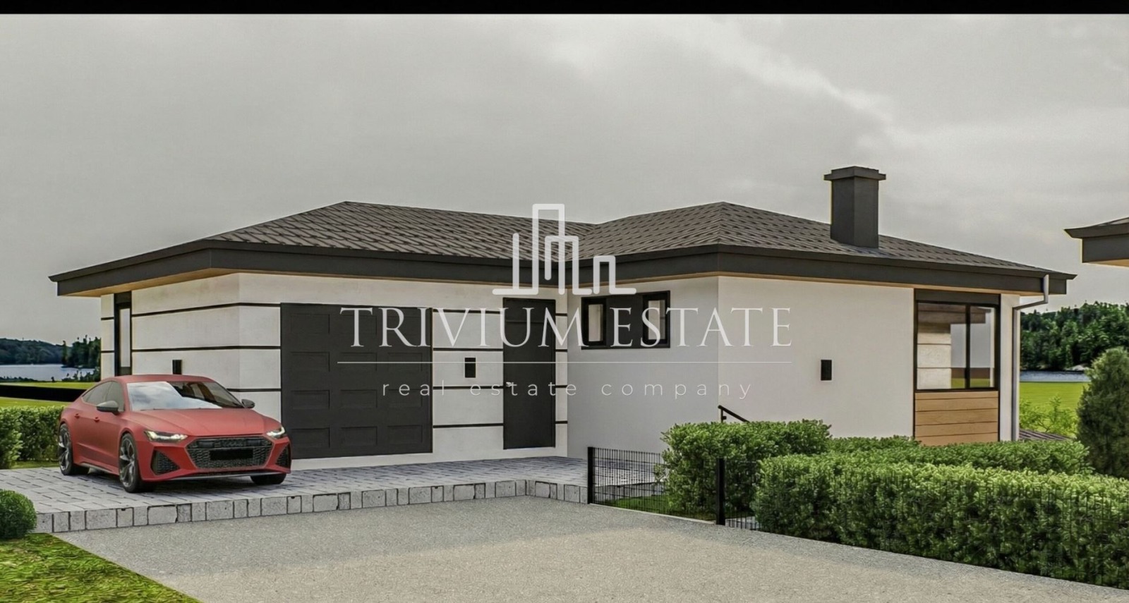 Агенция Trivium Estate предлага за продажба модерна двуетажна къща в с. Марково, разположена в затворен комплекс с бърз достъп до Пловдив. 🏡