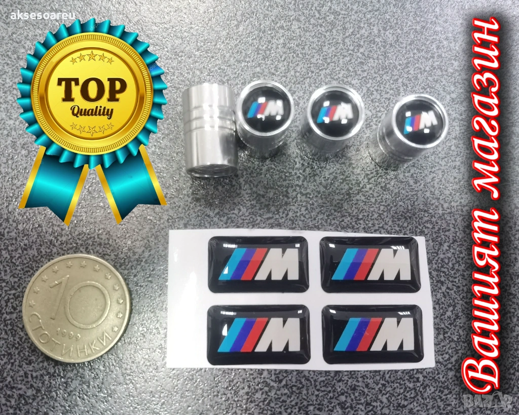 декоративни лепящи лога на BMW M Performance и 4 бр. декоративни алуминиеви капачки с вътрешна