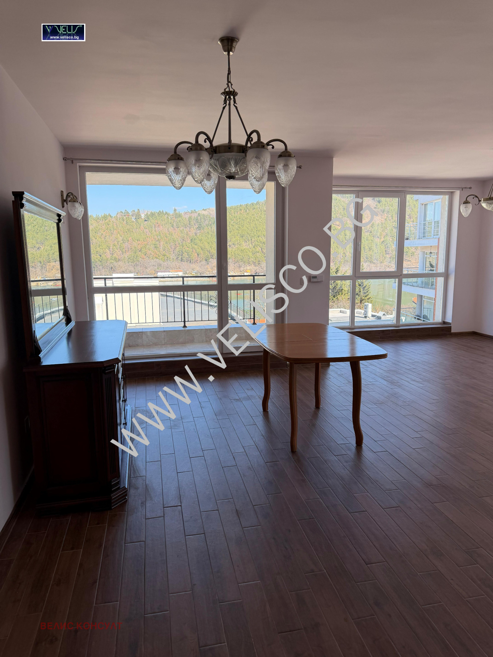 Нов светъл панорамен апартамент в жилищен комплекс Панорама Панчарево , на ул. Риляник; Жилището разполага с дневна с трапезария и кухненски бокс с тераса с гледка към езерото, 2 спални с южна тераса, 2 бани, едната към основната спалня и гардеробна. Вградена кухня, с фурна и стъклокерамичен плот Electrolux, съдомиялна и пералня, шкафове в гардеробната.Възможно е допълнително обзавеждане. Отоплението е с термопомпи LG и конвектори във всички стаи. Контролиран достъп, детска площадка. Паркомясто в подземен паркинг. Близо до комплекса има спирка на автиобусна лииия 1, 3, 4, които правят директна връзка с Метростанция Интер Експо Център. Бизнес Парк София и Ринг Мол са на 10 минути. В непосредствена близост има ресторанти на брега на езерото, спортно-развлекателни комплекси, модерен СПА комплекс, детски градини, училища (Англо-американското училище е в района) и занимални. Района е много подходящ за семейства с деца. За контакти, Ани