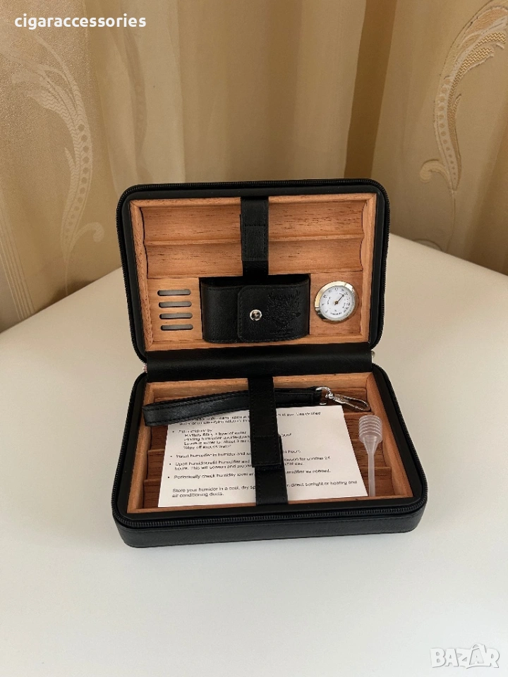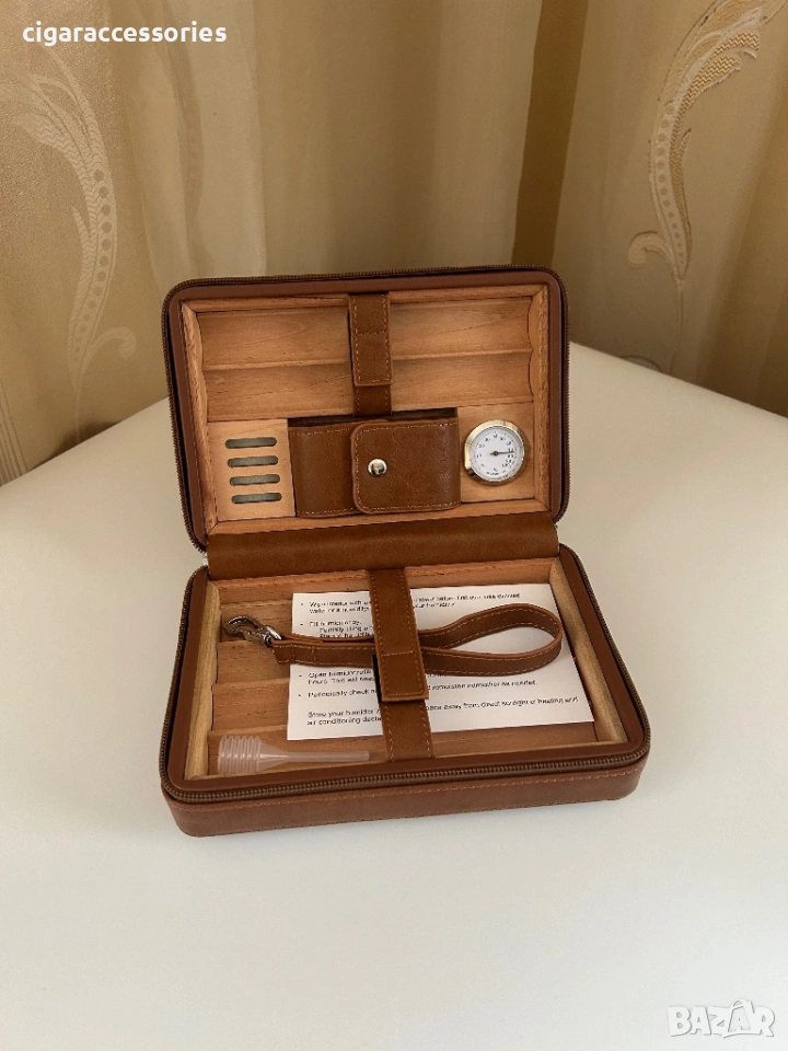 Преносим хумидор за 6 пури – естествена кожа, кедър, хигрометър