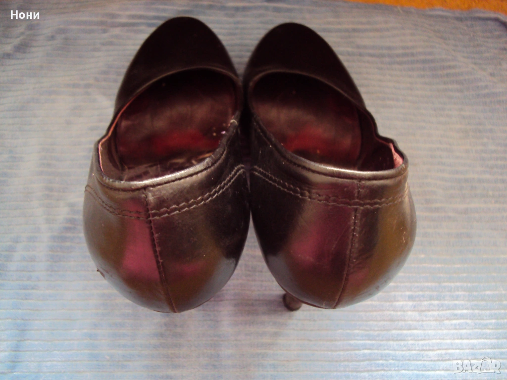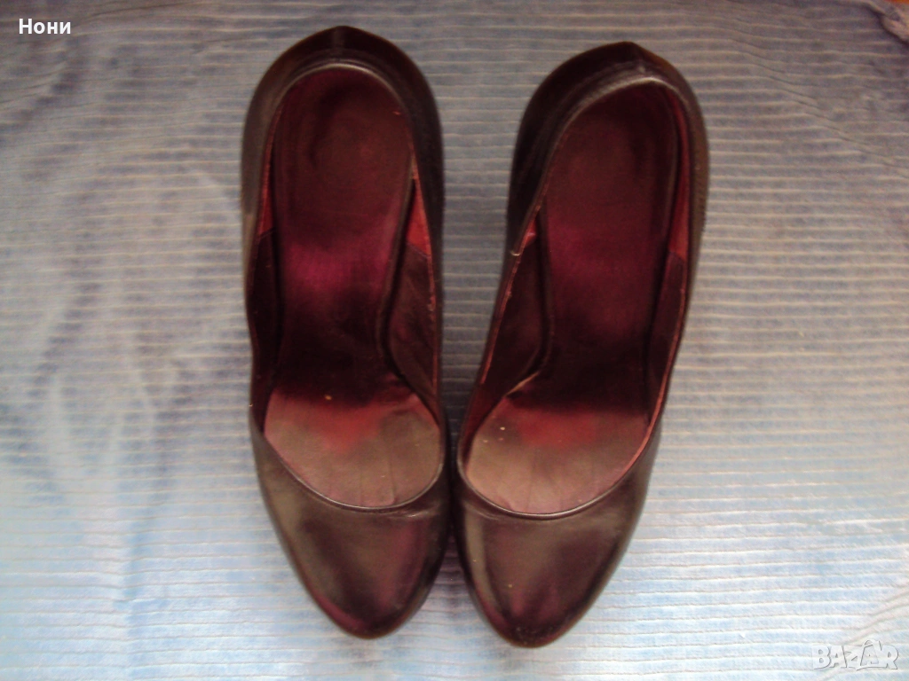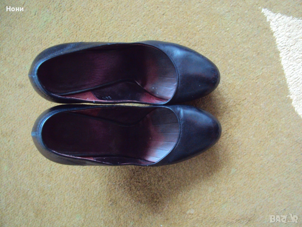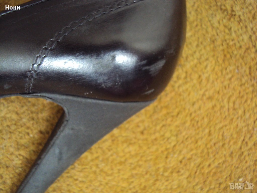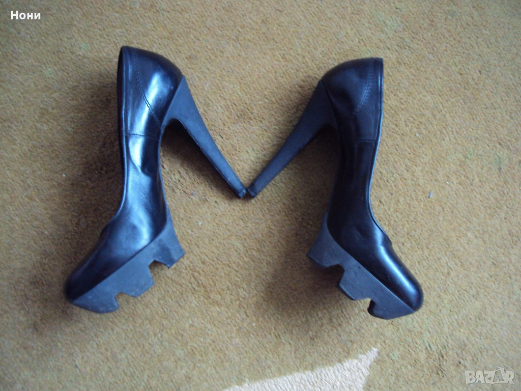 Черни дамски обувки от естествена кожа на платформа. Височина на тока 12 см. Платформата е височина 3 см. Носени до пъти. Номер 36 1/2. Състояние Отлично до НОВО. Viktor & Rolf ! Леката забележка е на последната снимка! Не се забелязва изобщо, но я описвам, защото съм коректна!