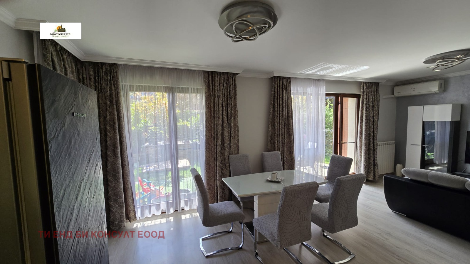 Представяме на Вашето внимание под наем тристаен луксозно завършен партерен мезонет на две нива, находящ се в затворен комплекс Флора Парк - кв. Манастирски ливади Изток. Разположението на комплекса в близост до бул. България и Околовръстен път, осигурява бърз достъп до центъра на София, Бизнес Парк, летището и останалите квартали на столицата. Районът предлага множество магазини за хранителни стоки, аптеки, ресторанти и училища, както и множество забавления на територията на МОЛ България.