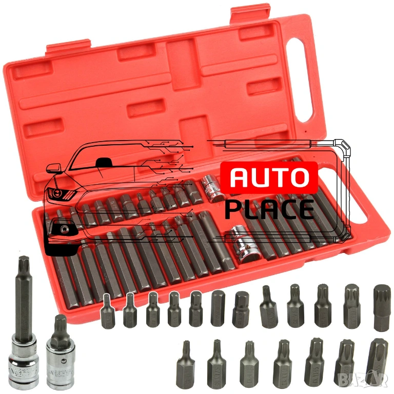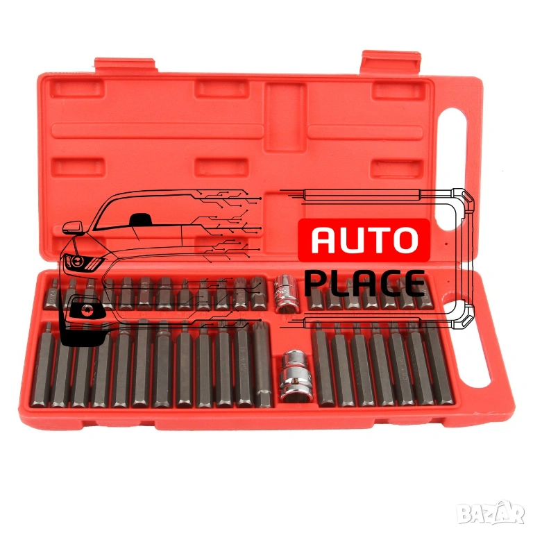 Професионален комплект накрайници от 40 части , използван за отвиване на специални винтове като: шестоъгълник, torx, шлиц.
