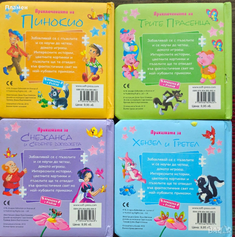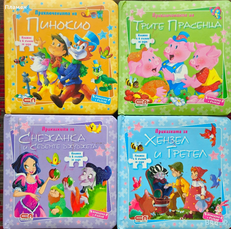 Четири книжки с 6 пъзела за игра -издание 2010г. с твърди корици -6 евро на брой.