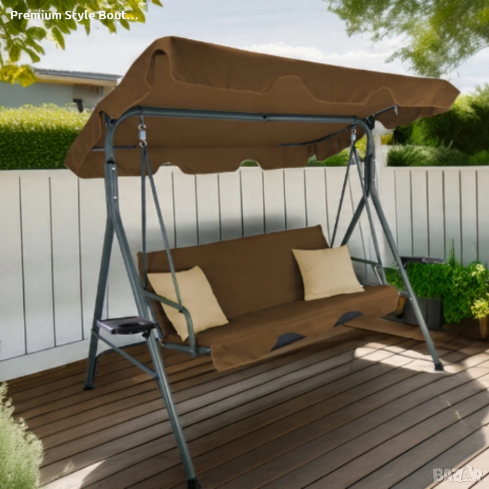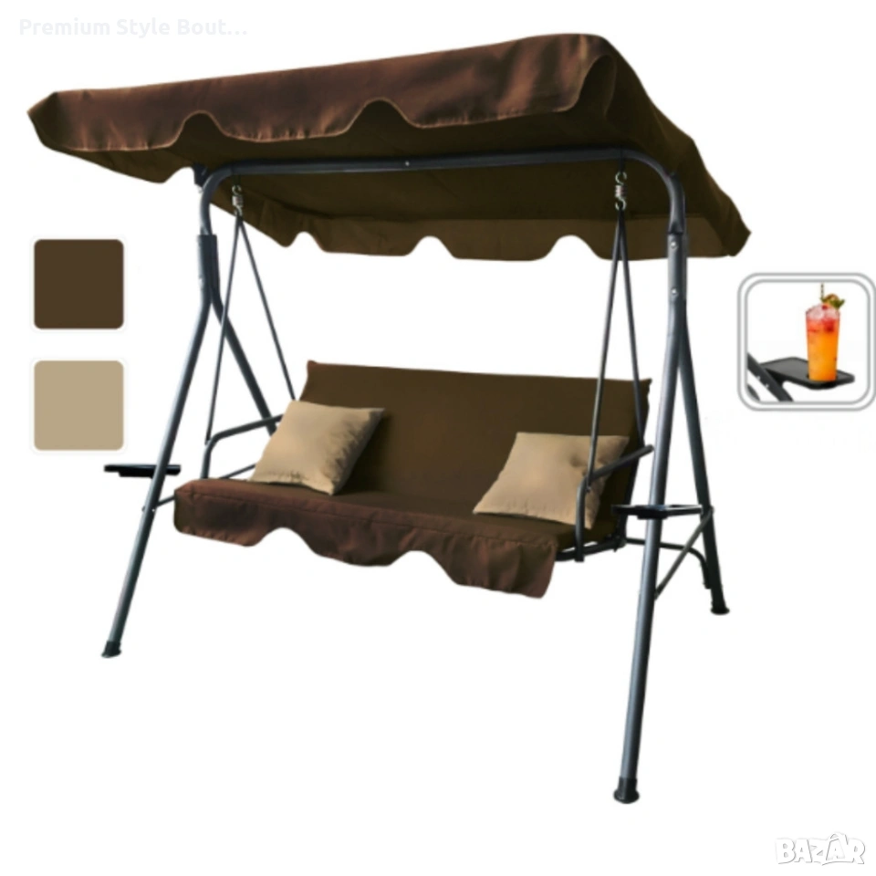 Градинска люлка A-Type с бежови възглавници и поставки за напитки - елегантност и комфорт