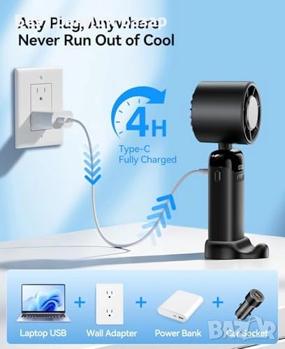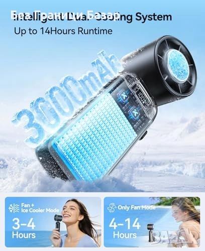 Нов Ръчен вентилатор с ледено охлаждане до 14 часа USB акумулаторен за лято