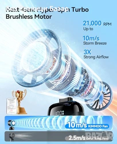 Преносим турбо вентилатор с мощен мотор до 21 000 RPM