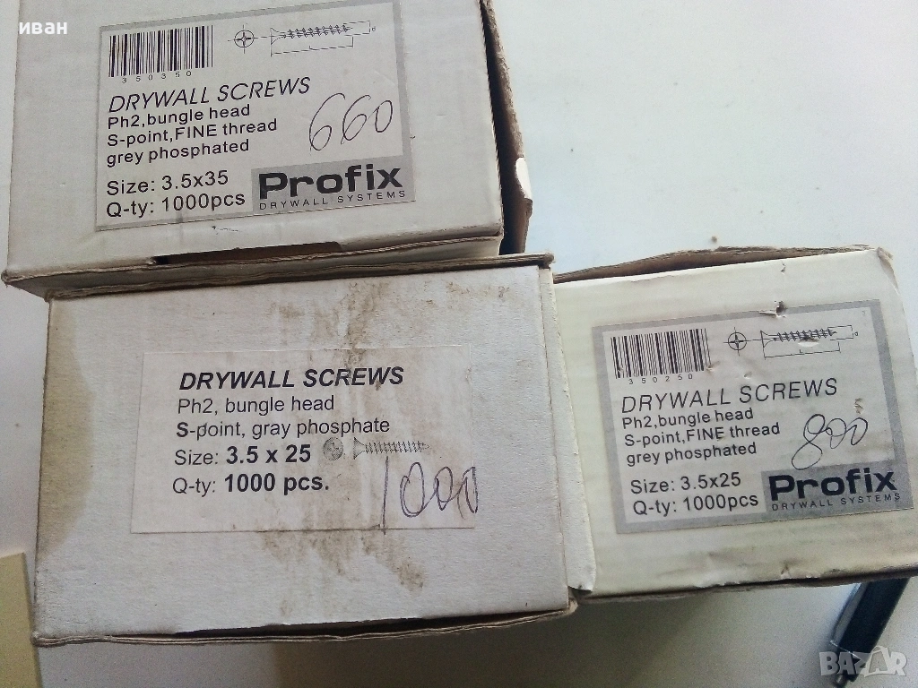 3.5 х 25 - 1800бр. Цена за всички 22 €.