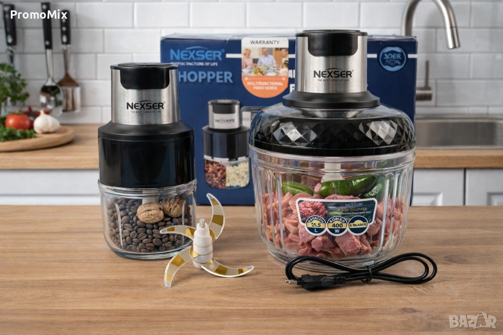 Кухненски уред 2в1 Nexser NS 0819 400W Чопър Мелничка Стъклена купа 2.5L 0.3L