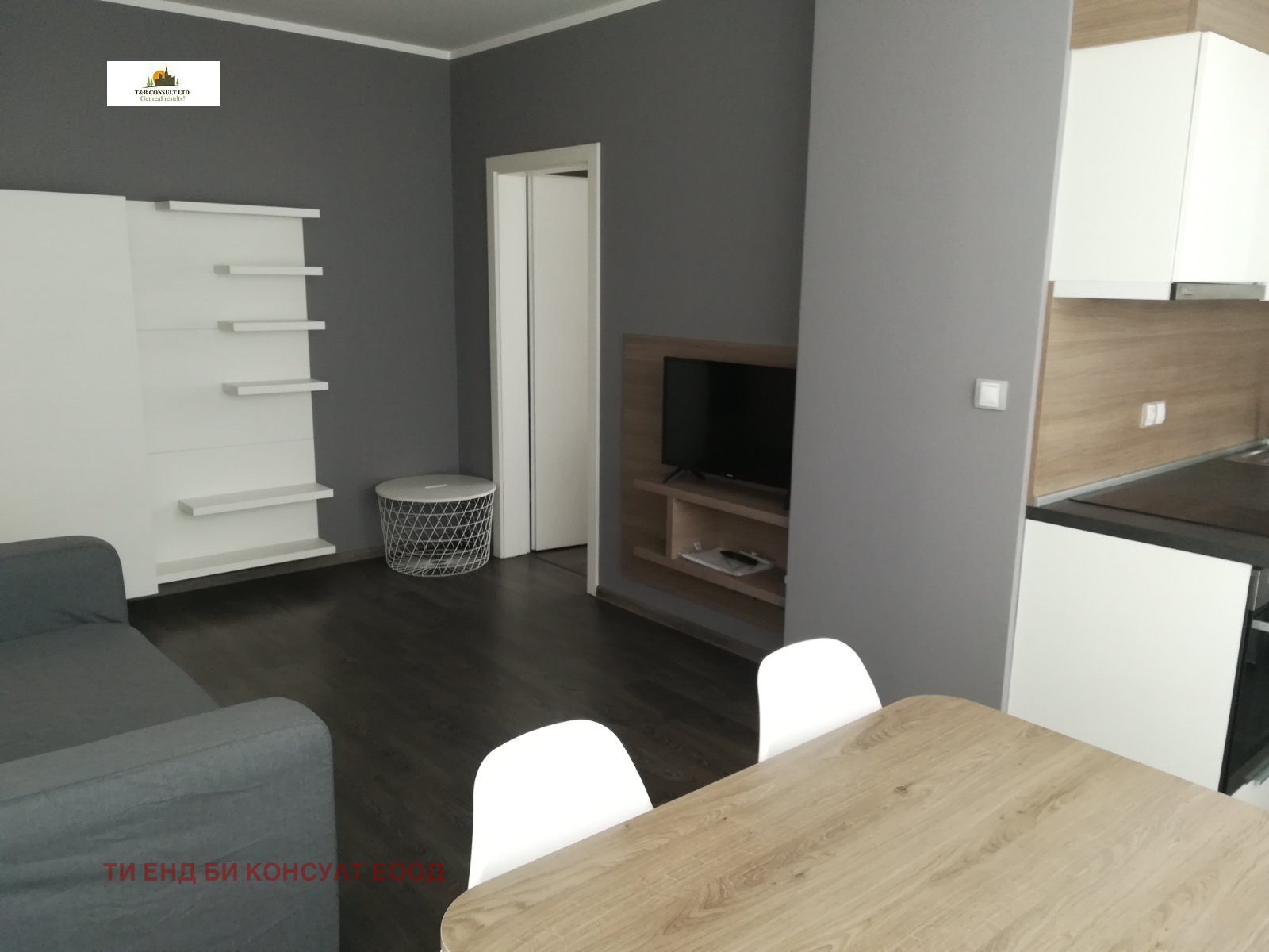 Разпределението му е следното: входно антре, всекидневна с кухненски бокс, две спални ,баня с тоалетна и тераса.
