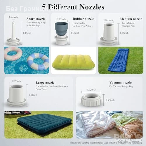 5 накрайника за съвместимост с повечето нисконалягани надуваеми изделия