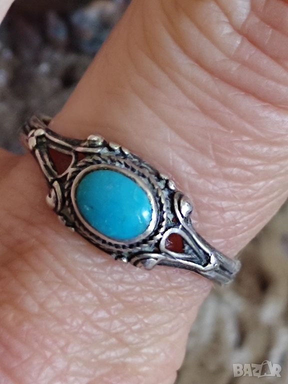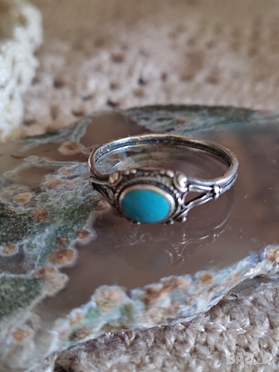 Стар сребърен пръстен с тюркоаз → Обява 53888194