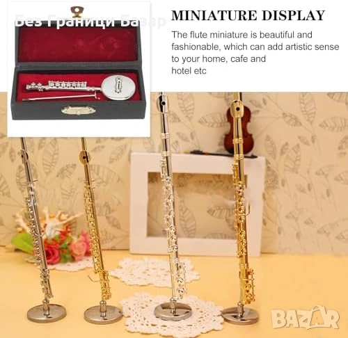Нова Миниатюрна флейта модел с поставка и кутия метална декорация, колекция