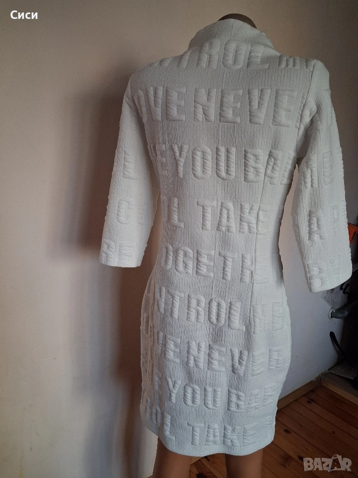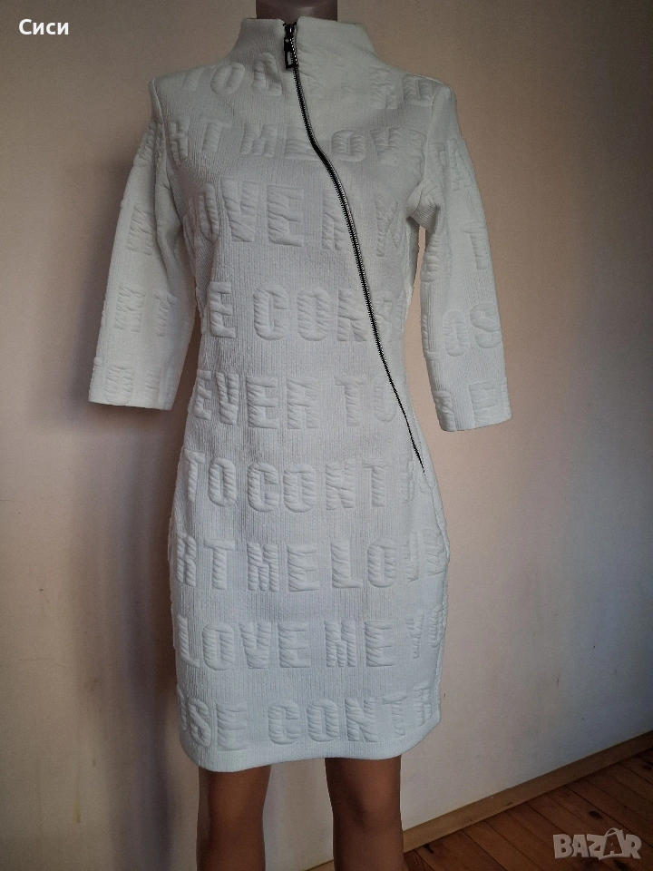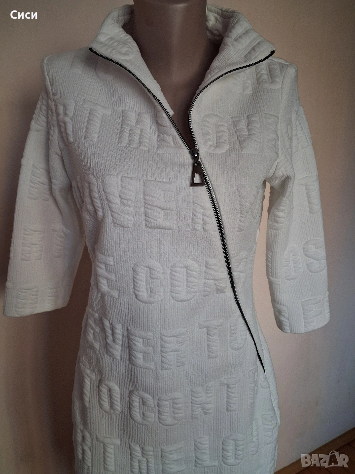 Бяла рокля с цип отпред,плата има разтегливост