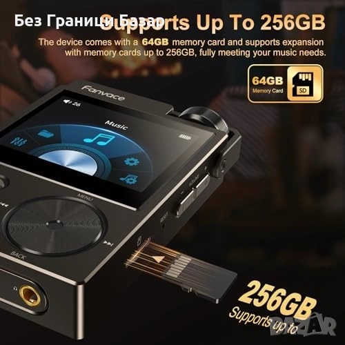 Нов Портативен HiFi MP3 Плейър Lossless DSD 64GB 24bit/192kHz DAC Черен