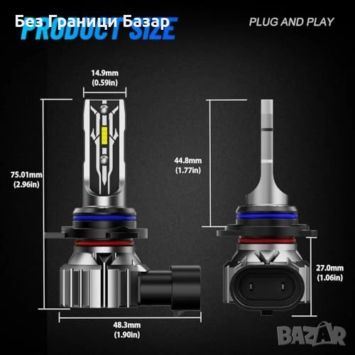 Нови 2 броя крушки NIGHTEYE 9012 HIR2 LED светлини 6500K мини размер CANbus