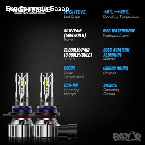 LED крушки NIGHTEYE HIR2 / 9012 с до 300% по-силна светлина