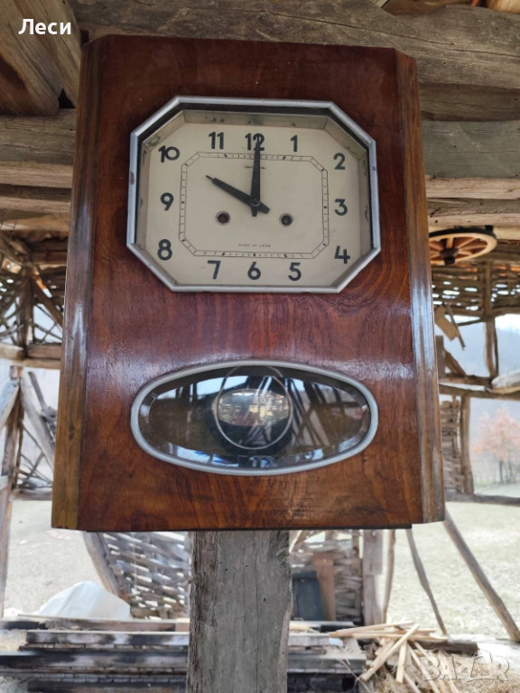 Руски стенен стар часовник,,Jantar" made in USSR, голям правоъгълна форма механичен със махало и ключе. Работещ , в идеално състояние,изработен от дърво, ,стъкло и метал