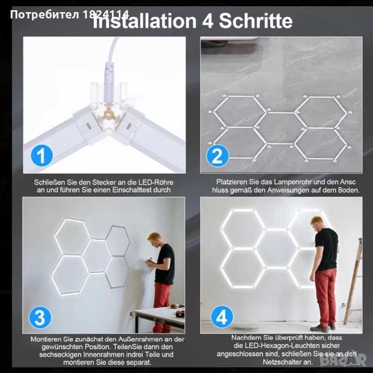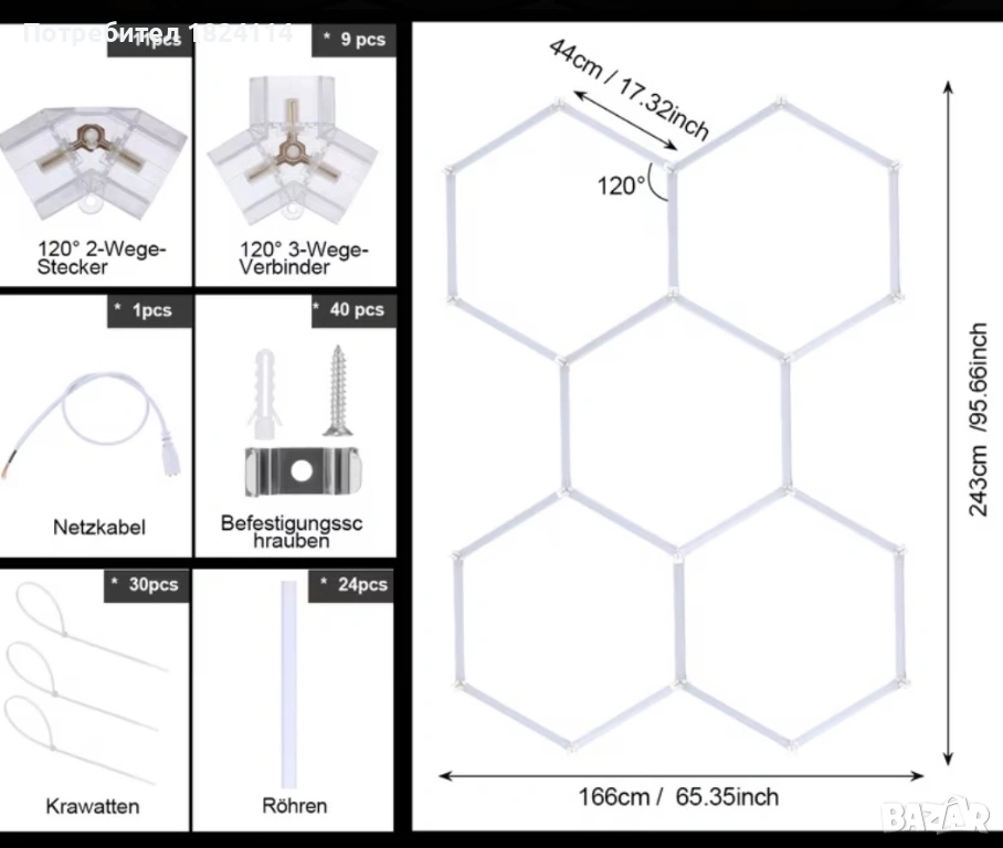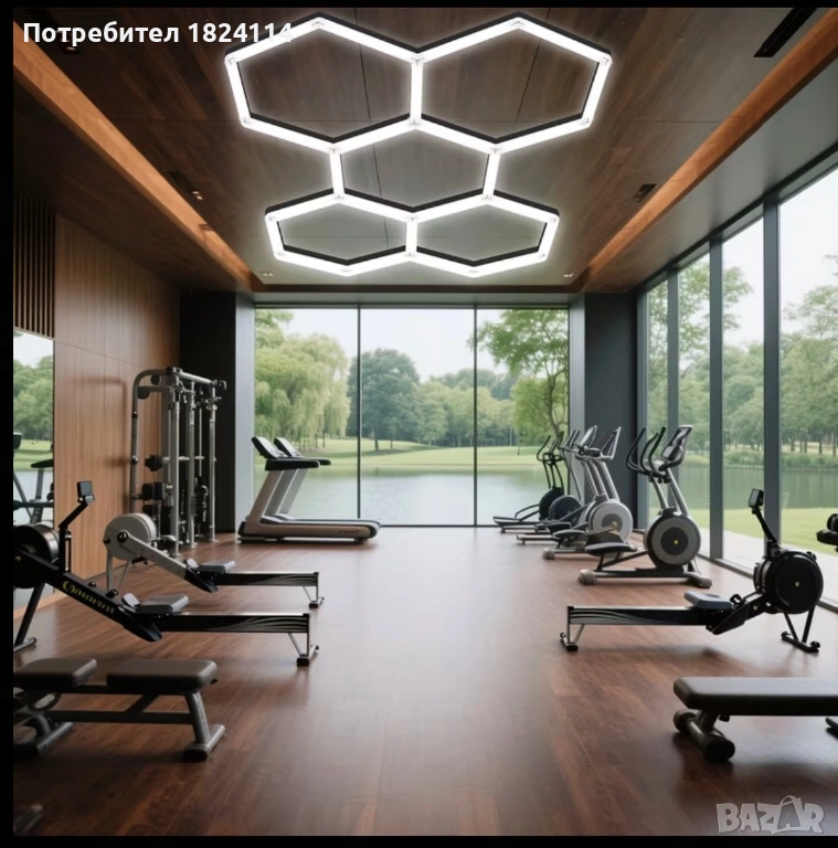 Шестоъгълна LED осветителна система тип пчелна пита (5 дупки) Подходящи за детайлинг студия,работилници,гараж,фитнес,