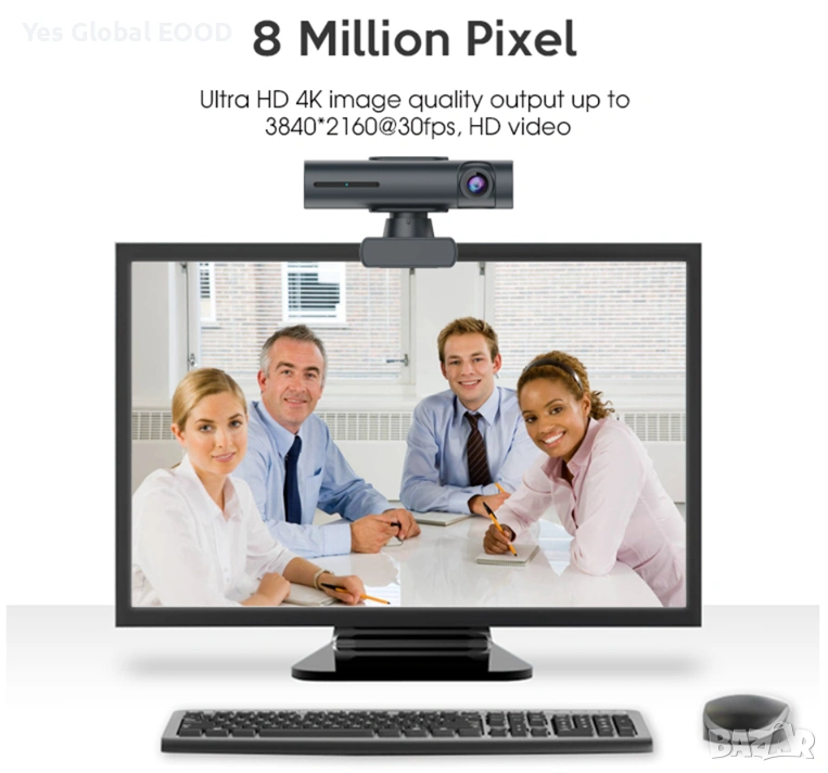 YesSmart YS7080 е висококачествена 4K USB уеб камера с AI автоматично проследяване, управление с жестове и PTZ (Pan-Tilt-Zoom) функции. Създадена е за професионални онлайн срещи, стрийминг, онлайн обучение и създаване на видео съдържание.