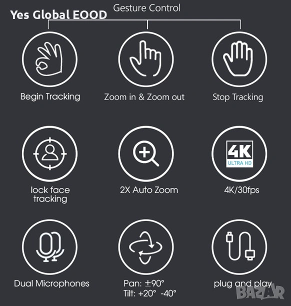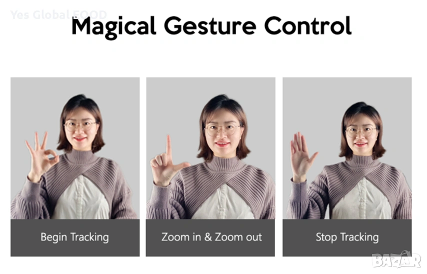 YesSmart YS7080 поддържа управление с жестове, което позволява контрол на zoom и движение на камерата без използване на софтуер или дистанционно.