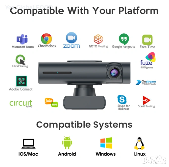 Камерата се свързва чрез USB Type-C и работи с plug-and-play, без нужда от драйвери. Съвместима е с Windows, macOS и Linux, както и с популярни платформи като Zoom, Microsoft Teams, Google Meet и Skype.