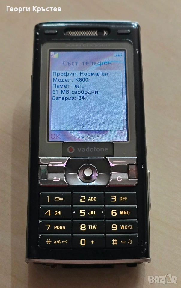Телефона се включва и работи идеално, тестван с А1, нямам друга за проба, зарежда си батерията, която не е пробвана, но телефона се включва с нея и се провеждат разговори, би трябвало да е ОК, клавиатура, джойстик, подсветка, камера, слушалка, микрофон, всичко е ОК, има БГ меню, джойстика понякога в едната посока не реагира веднага, а трябва да се натисне да кажем втори път, бутон "червена слушалка" се натиска една идея по - трудно, добър външен вид, задния капак както капачето на камерата са малко позахабени, без зарядно.