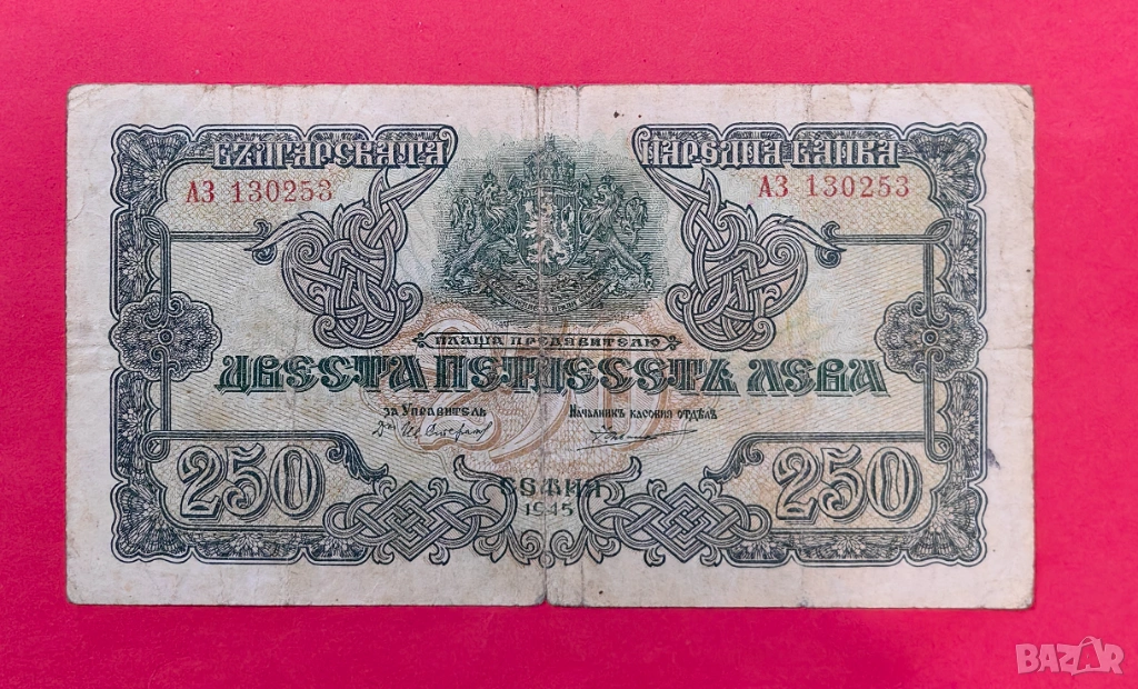 250 лева 1945 година България - 2 Букви → Обява 53889024