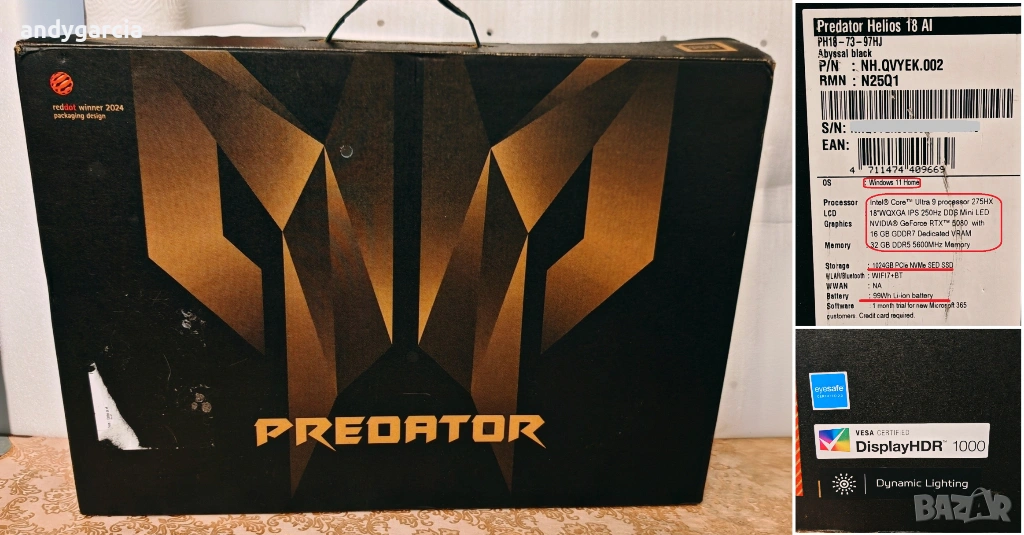 - фабричната ACER PREDATOR кутия + 2ра брандирана такава специално за лаптопа