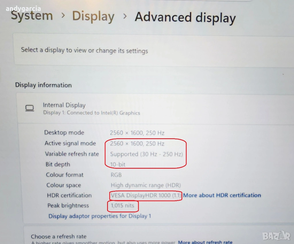 Убийствена яркост HDR 1000, масовo лаптопите са с до 300 нита, а 400-500 е рядко срещано.
