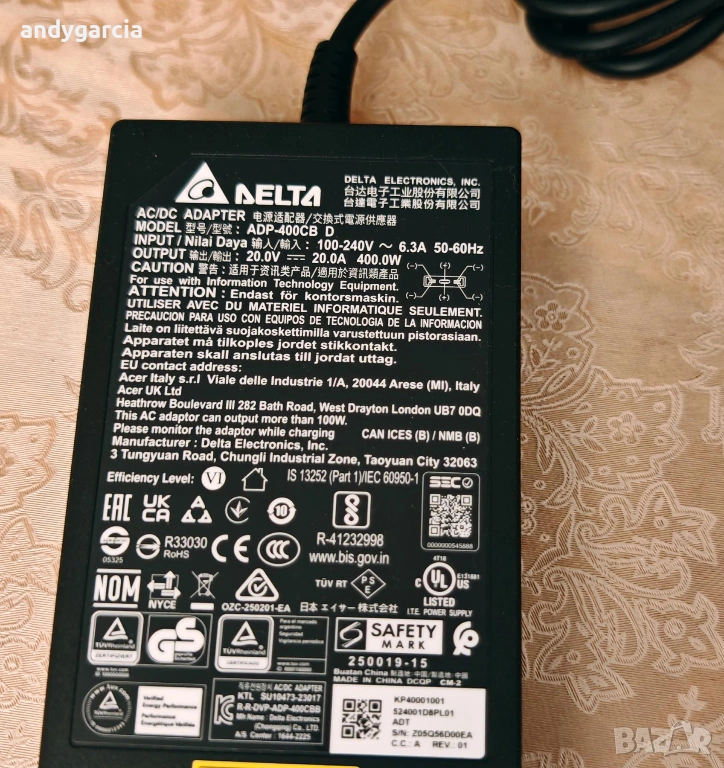 - оригиналното 400W зарядно устройство + захранващ кабел в отделна кутия