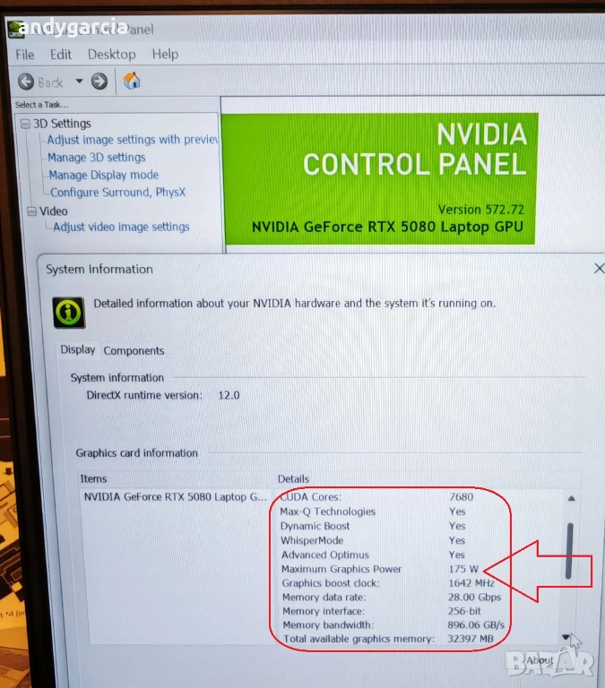 - геймърска видео карта NVIDIA GEFORCE RTX 5080 18GB GDDR7 в пълната си мощност от 175W.