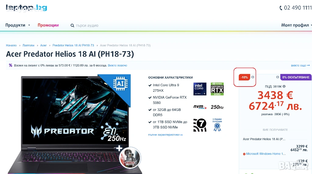 Цена в момента на същия с ААОЕМ лицензиран Windows 11 Home - 3440€ или 6724лв. /като това е цена на промоция с 10% отстъпка от редовната 7400лв./, за справка ТУК И НА ПОСЛЕДНАТА СНИМКА :