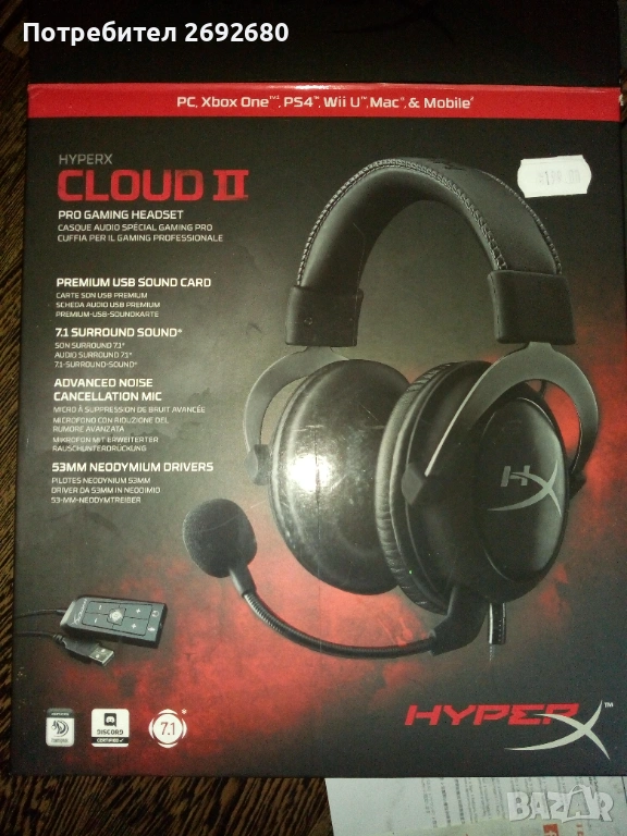 Слушалки HYPERX CLOUD 2 → Обява 53889224
