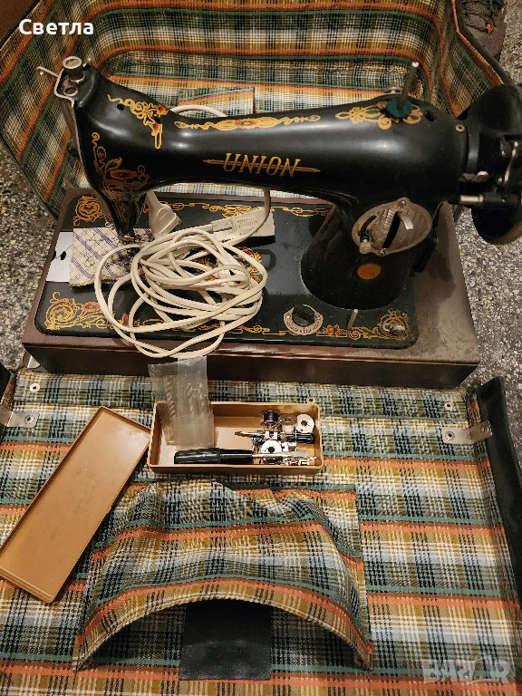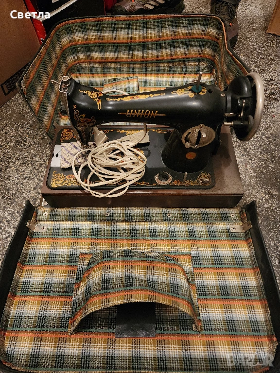 Ретро шевна машина UNION – с оригинален куфар и аксесоари, снимка 1 - Шивашки услуги - 53889226 Ретро шевна машина UNION – с оригинален куфар и аксесоари, снимка 2 - Шивашки услуги - 53889226 Ретро шевна машина UNION – с оригинален куфар и аксесоари, снимка 3 - Шивашки услуги - 53889226 Ретро шевна машина UNION – с оригинален куфар и аксесоари, снимка 4 - Шивашки услуги - 53889226 1/4