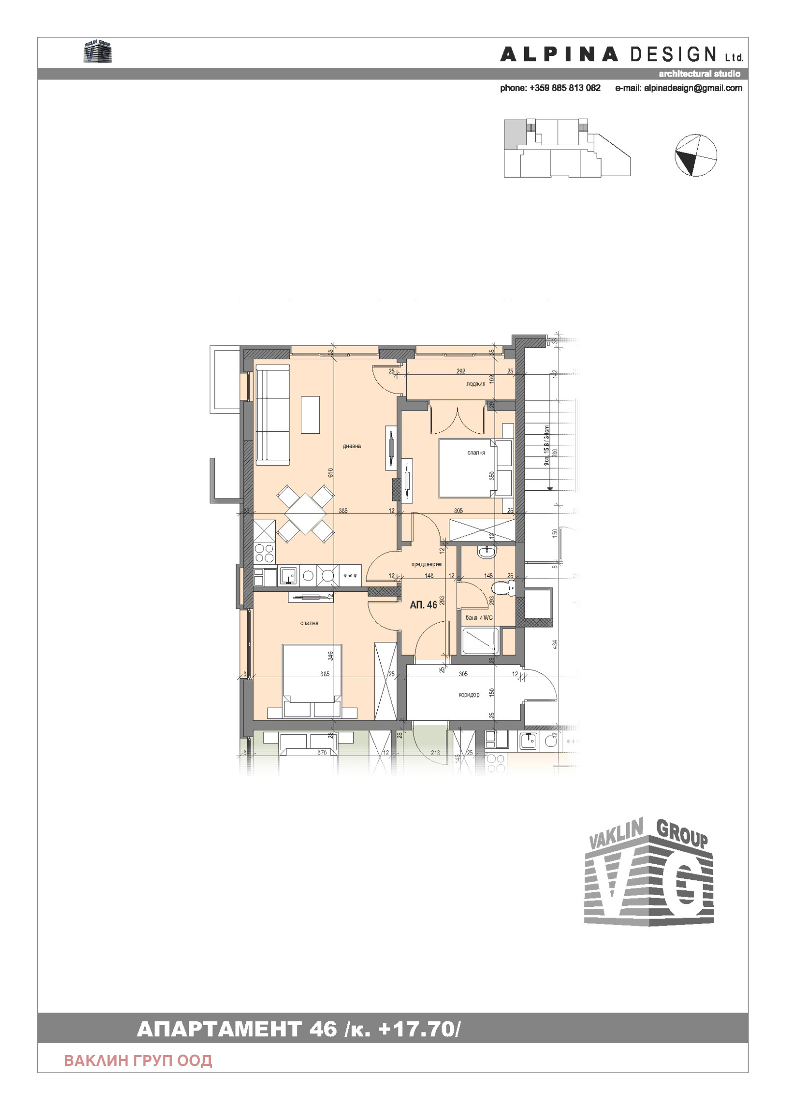✔ 85,38 кв.м функционално разпределение просторна всекидневна, две самостоятелни спални, баня с WC + отделно WC, склад и тераса