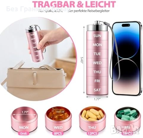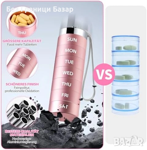Практичен 7-дневен органайзер за лекарства с голям вътрешен обем