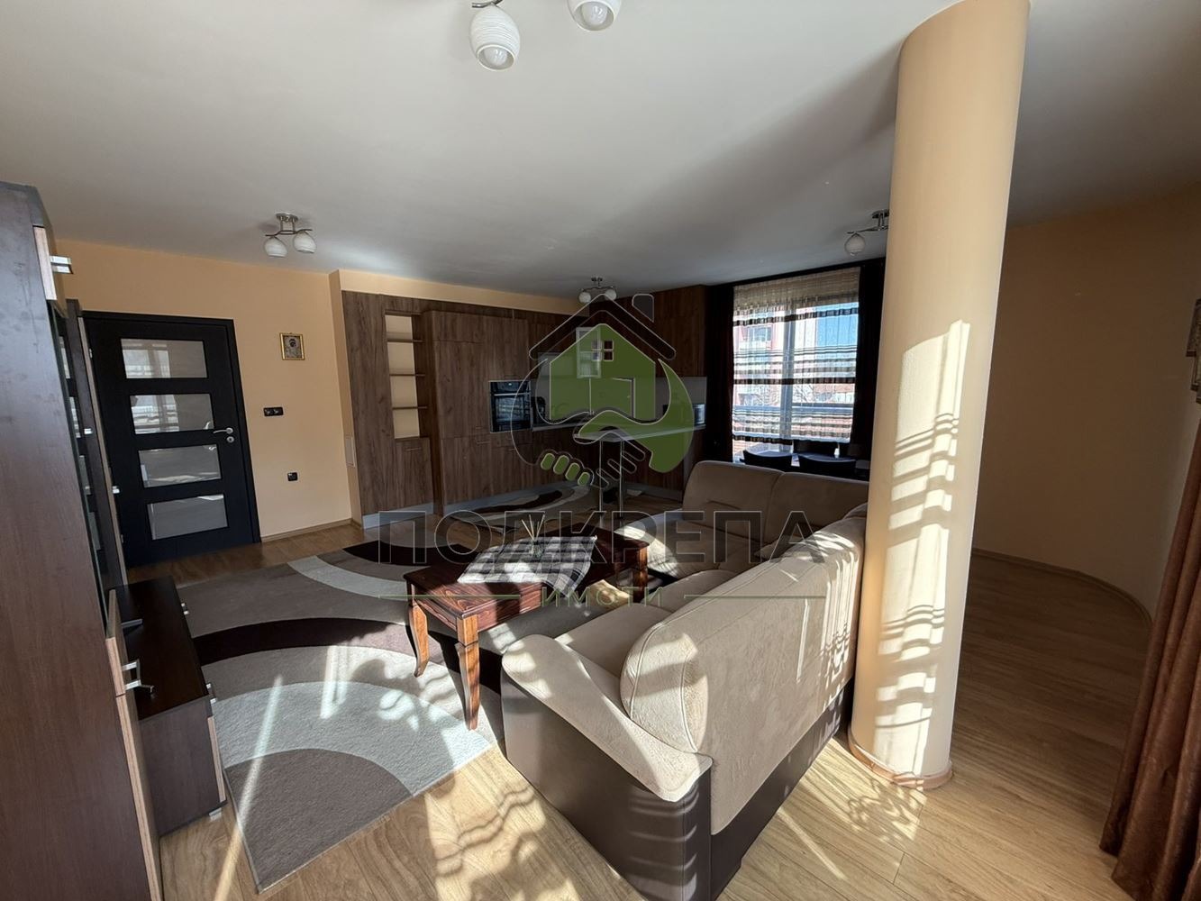Холът е светъл и много просторен, обзаведен с голям разтегателен диван, който може да бъде позициониран и като ъглов, трапезна маса с четири стола (с възможност за шест места), телевизор и климатик Daikin 18-ка, осигуряващ комфорт през всички сезони. Кухненската част е напълно оборудвана и разполага с всичко необходимо за едно домакинство.
