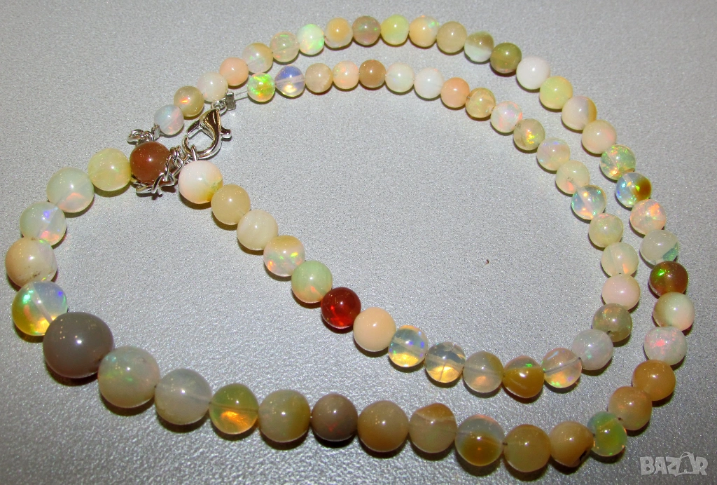 Гердан от натурален етиопски опал 90 карата, дължина 43-46см. Размер на топчетата от 5-9мм. Цена 90 евро.