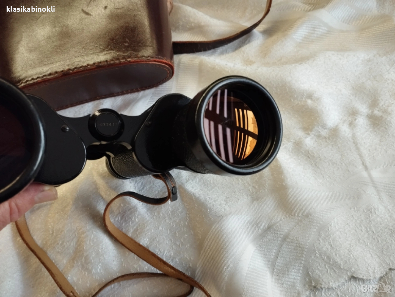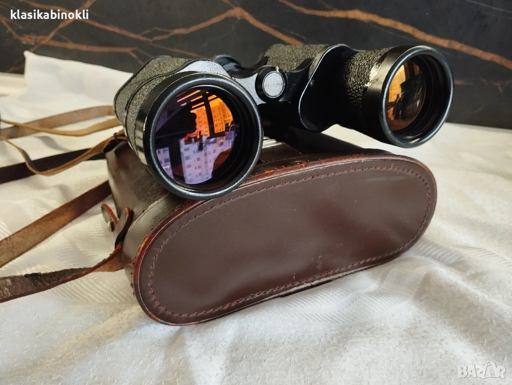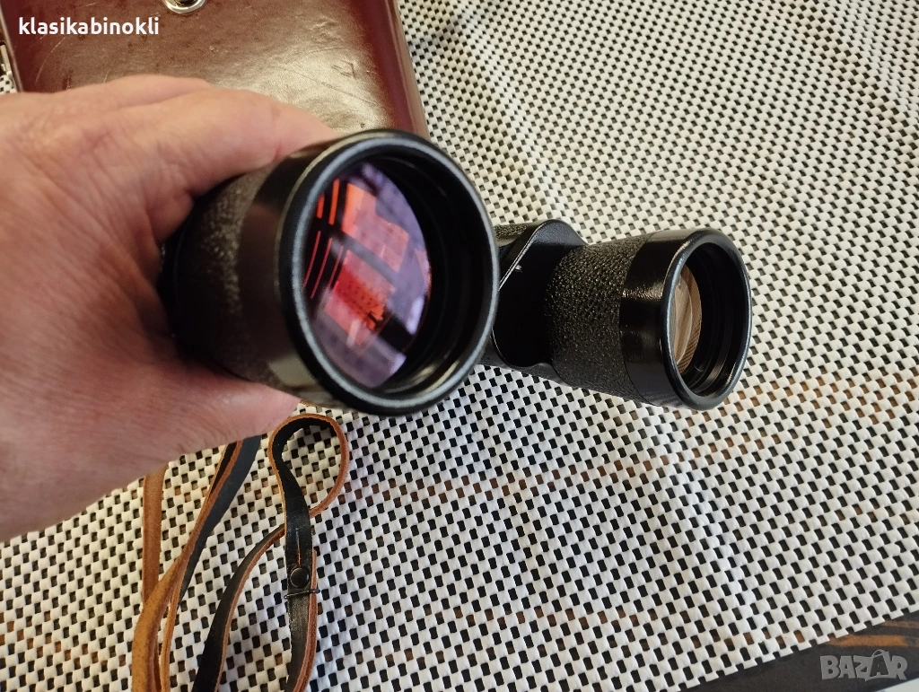 Бинокълът е в комплект с - ПЕРФЕКТЕН ОРИГИНАЛЕН КОЖЕН ТВЪРД КАЛЪФ--ЕСТЕСТВЕНА КОЖА , ПЕРФЕКТНИ КОЖЕНИ РЕМЪЦИ