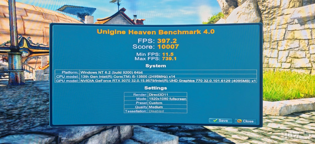 Продавам Геймърско РС Intel I5 13500 14/20 Core/32Gb D5/1TB SSD/MSI 3070/Гаранция