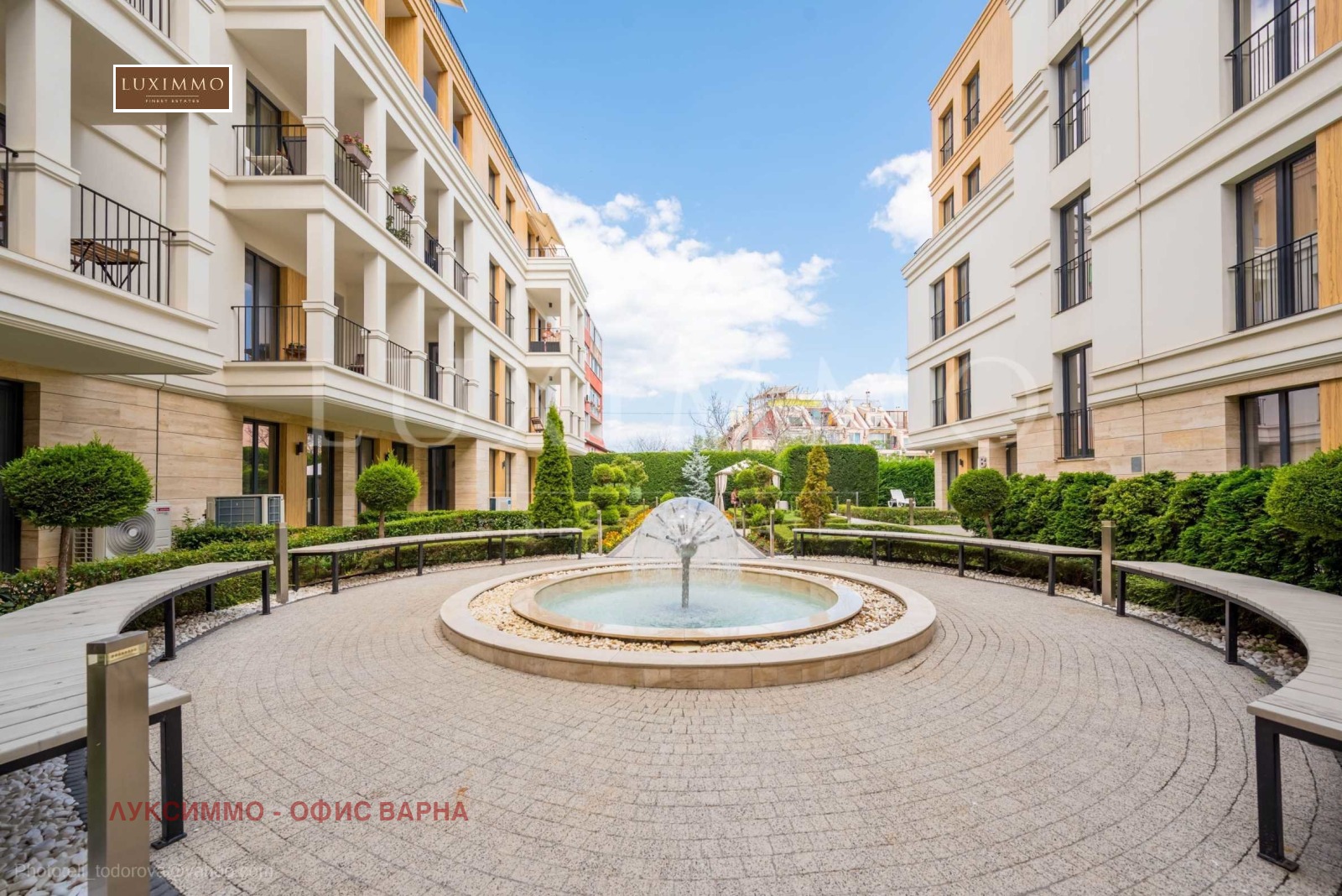 озеленен парк с фонтан и алеи, басейн, беседка с барбекю, осигурен паркинг;