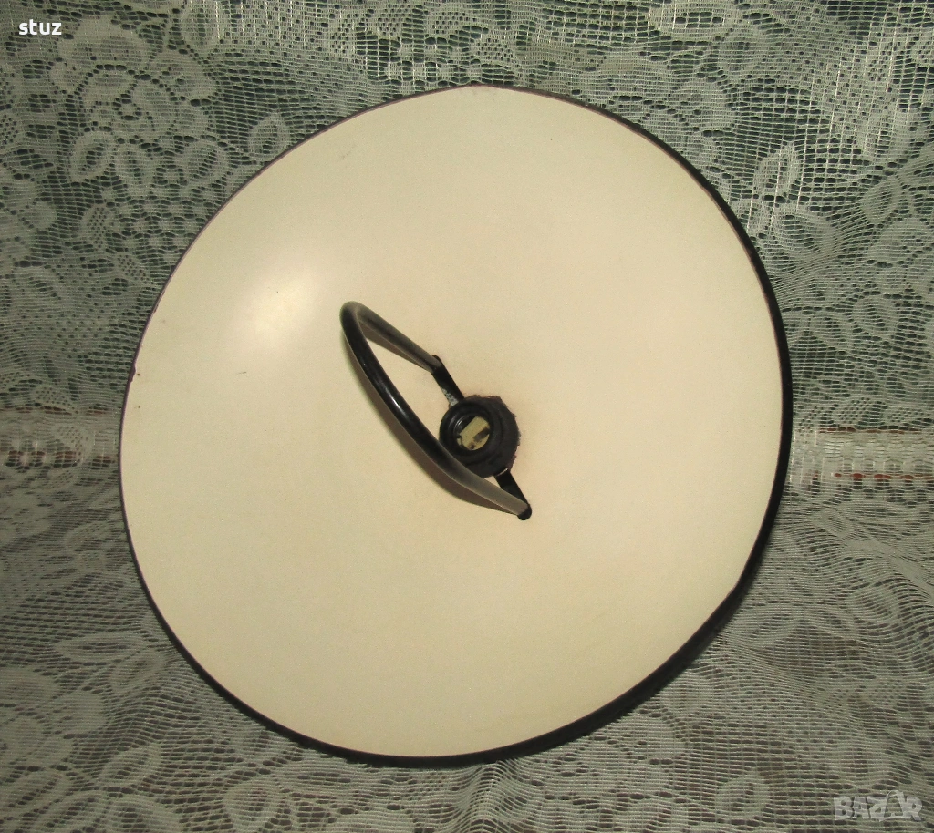 Запазена отлично, с леки, но отстраними забележки по боята по периферията на металния плафон.