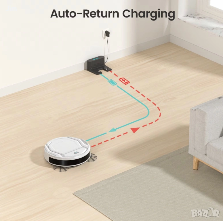 Интелигентно приложение и гласов контрол : използвайте приложението Lefant, за да зададете програми за почистване, режими, мощност на засмукване и посока на почистване. M210 също поддържа гласови команди чрез Alexa и Google Assistant за управление със свободни ръце.